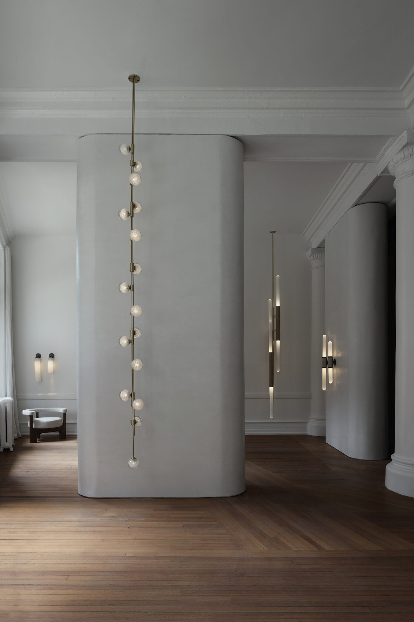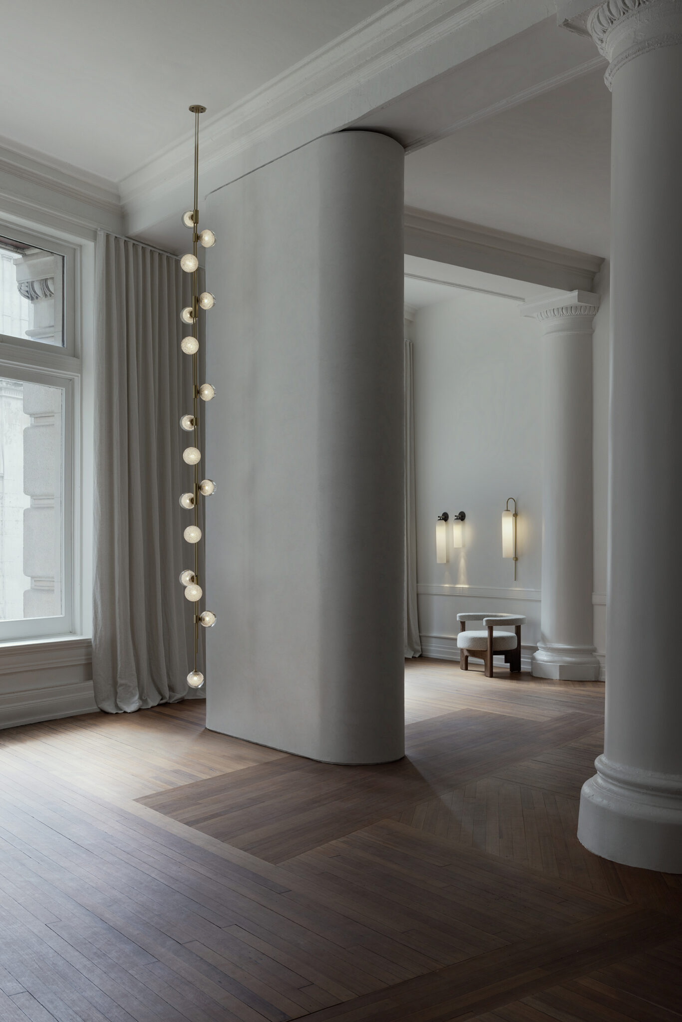 Sited within a grand heritage space on Broadway with voluminous ceilings and a wall of windows overlooking the flatiron district, the new Articolo Studios showroom creates a series of separate spaces that showcase the full lighting collection.